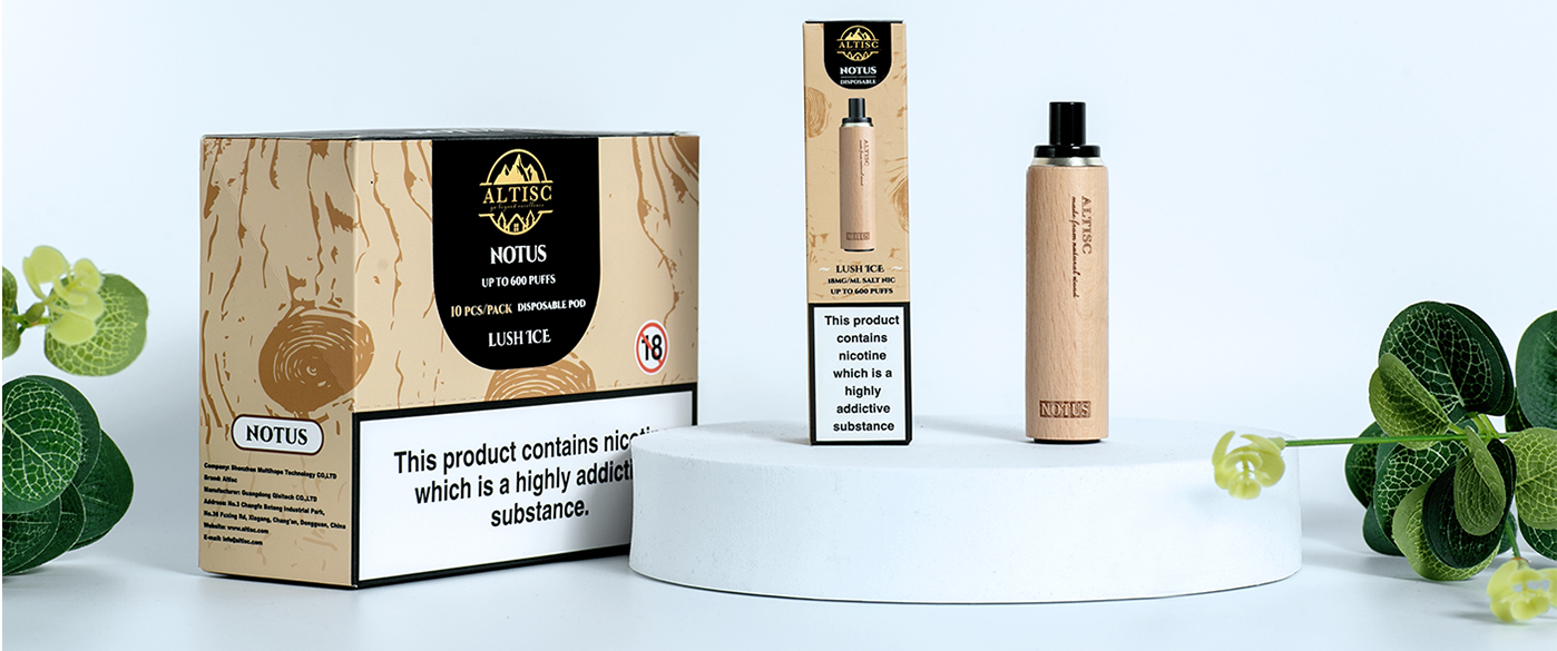 Altisc Notus 600 Disposable, elektronik sigara dünyasında öncü bir ürün olarak öne çıkıyor. Yaygın tek kullanımlık plastik elektronik sigaraların aksine, bu cihaz öncelikle doğal ahşaptan yapılmış bir yapıya sahiptir. Bu yenilikçi yaklaşım, mobilya üretiminden arta kalan odunları kullanarak çevre dostu elektronik sigara çözümlerine doğru önemli bir adım atıyor.