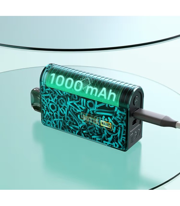 Aspire Gotek Nano Pod Kit, zarif ve kompakt tasarımı ile hem estetik hem de performans arayan elektronik sigara kullanıcılarına hitap ediyor. Dahili 1000 mAh bataryası sayesinde tek şarjla gün boyu kullanım sağlar. 1A hızlı şarj desteği ile yaklaşık bir saat içinde tam doldurulabilir.
