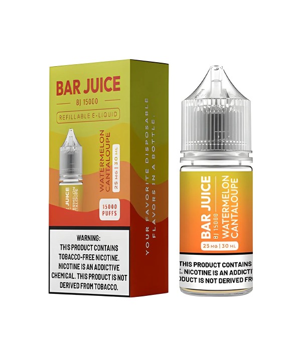 Bar Juice Watermelon Cantaloupe Salt Likit, tatlı karpuz ve misket kavununun ferahlatıcı birleşimiyle meyvemsi, hafif ve dengeli bir elektronik sigara likitidir. 50VG / 50PG oranı sayesinde pürüzsüz içim ve net aroma performansı sağlar. 30 mL şişede; 25 mg ve 50 mg nikotin seçenekleriyle üretilmiştir.