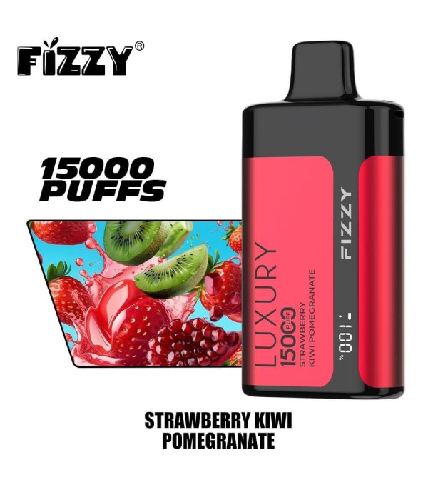 Fizzy Luxury 15000 Puffs Disposable Vape, 22 mL hazır dolu likit ve yaklaşık 15.000 puff kapasitesiyle uzun süreli kullanım sunar. Mesh coil yapısı, ayarlanabilir hava akımı ve LCD ekran ile aroma ve buhar yoğunluğunu kontrol etme imkânı verir. Aroma çeşitleri arasında Yaban Mersini & Ahududu, Çilek, Şeftali, Kivi Tutku Meyvesi gibi tatlı ve meyvemsi seçenekler bulunur. Metal gövde tasarımı ve taşıma halkasıyla hem dayanıklı hem şık bir kullanım deneyimi sağlar.