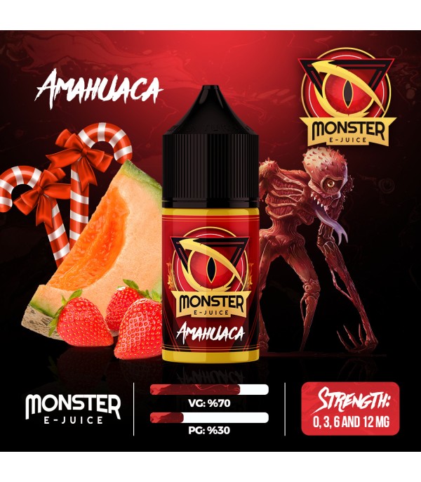 Monster Amahuaca E-Likit: Çilek ve Kavun Aromalı, Kırmızı Şişeli Premium E-Juice