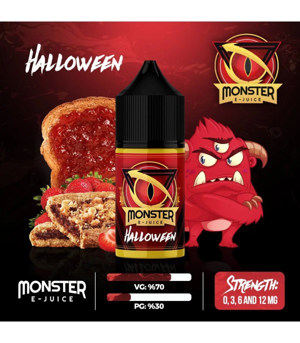 Monster Halloween Likit 30ml: Bisküvi ve çilek reçeli aromalarının mükemmel uyumu! %70 VG / %30 PG oranıyla yoğun buhar ve dengeli tat sunar. Tatlı ve pastane aroması arayanlar için ideal elektronik sigara likiti. Keyifli ve pürüzsüz içim deneyimi için hemen keşfedin.