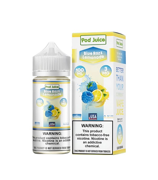 Pod Juice Blue Razz Lemonade, ekşi mavi ahududu ve ferah limonata aromalarının canlı birleşimini sunan taze ve meyvemsi bir elektronik sigara likitidir. 70VG / 30PG oranı sayesinde yoğun buhar ve güçlü aroma dengesi sağlar. 100 mL şişede, 0 mg, 3 mg ve 6 mg nikotin seçenekleriyle üretilmiştir.