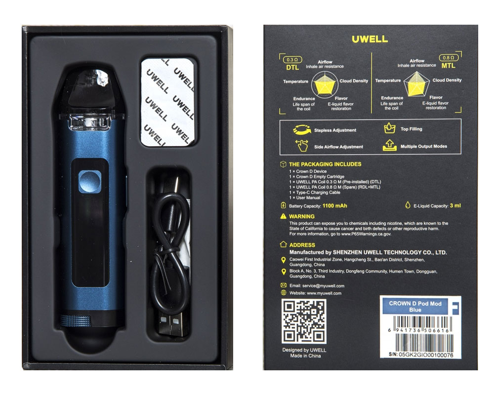 Uwell Crown D Pod Mod Kit, temel ihtiyaçlarınızı karşılayarak elektronik sigara deneyiminizi daha eğlenceli hale getirmeyi amaçlayan güçlü bir cihazdır. Bu cihaz, kullanıcıların çeşitli elektronik sigara deneyimleri yaşamasını sağlayan geniş bir güç aralığına (5W ila 35W) sahiptir.