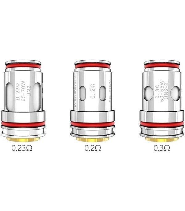 Uwell Crown V (5) Yedek Kartuş (Coil) seçenekleri. Uwell Crown V Subohm Tankı ile tam uyumlu, yoğun buhar ve zengin lezzet sunan UN2 0.23 Ohm, UN2-2 0.3 Ohm ve UN2-3 0.2 Ohm Mesh coil çeşitleri. Performansınızı artırmak için hemen keşfedin!