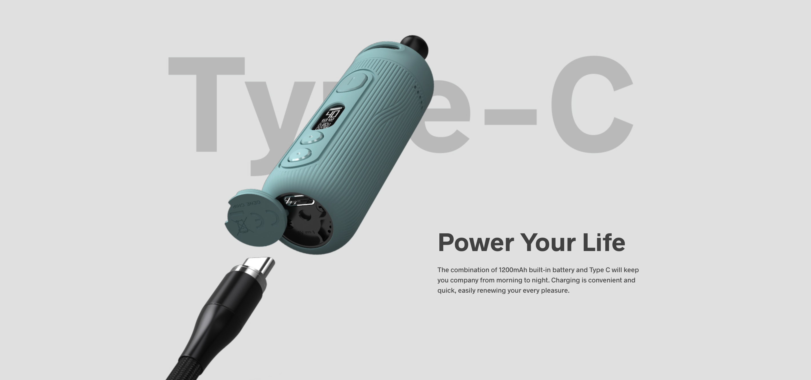 5-40W güç aralığı, farklı buhar ve lezzet tercihlerine uygun bir deneyim sunarken, 1200mAh dahili batarya uzun süreli kullanım sağlar. USB Type-C hızlı şarj desteği, cihazın kısa sürede tam şarj olmasını sağlar, böylece kesintisiz bir kullanım deneyimi sunar.