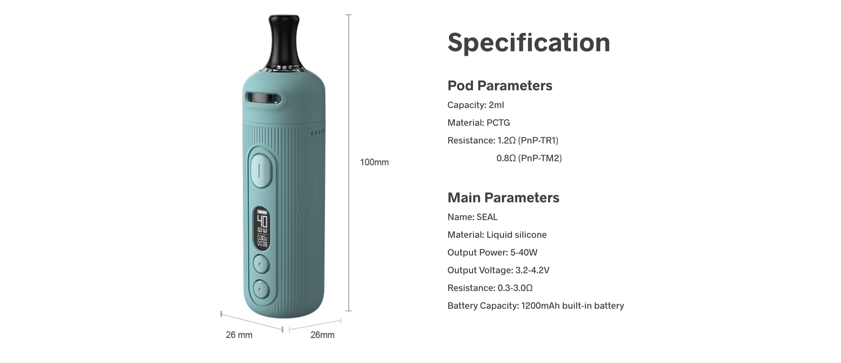 VOOPOO SEAL 40W Pod Mod Kit, kompakt tasarımı ve güçlü özellikleriyle dikkat çeken bir cihazdır. 5-40W çıkış aralığı sunan bu pod mod, entegre 1200mAh pil kapasitesi ile uzun süreli kullanım imkanı sağlar.
